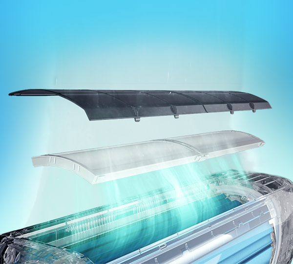 Klimatyzacja i oczyszczacz powietrza 2 w 1. Technologia Self Purify wraz z zaawansowanym filtrem IFD, jest odpowiedzialna za skuteczne oczyszczanie powietrza w klimatyzowanym pomieszczeniu. Siatka filtrująca IFD zapewnia większą zdolność usuwania zanieczyszczeń w powietrzu, składa się ona z 7000 otworów do pochłaniania pyłu oraz innych zanieczyszczeń. Pomiar skuteczności oczyszczania powietrza z funkcją SELF PURIFY wg CADR (Clean Air Deliver Rate) wynosi nawet 300m³/h. Oznacza to, że wydajność oczyszczania powietrza jest równie wysoka, jak w przypadku profesjonalnych oczyszczaczy powietrza dostępnych na rynku. Włączona funkcja oczyszczania generuje elektryczność statyczną absorbującą zanieczyszczenia w powietrzu – powodując przyciąganie pyłu. Moduł z filtrem IFD można łatwo odłączyć i ponownie wykorzystać po umyciu.
