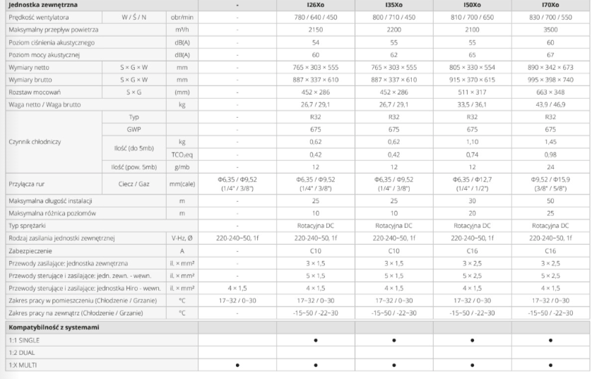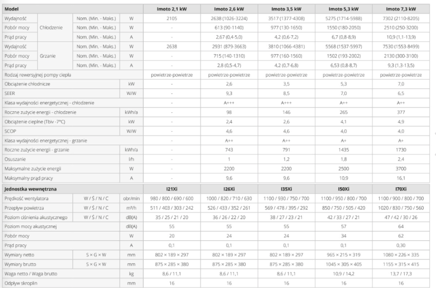 - A+++ (dla mocy 2,6 kW i 3,5 kW)