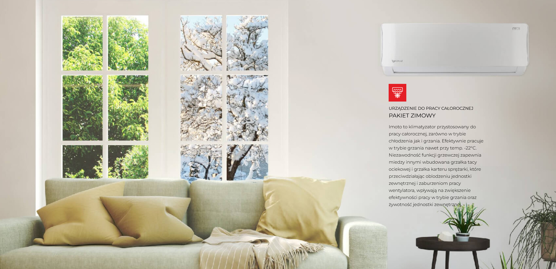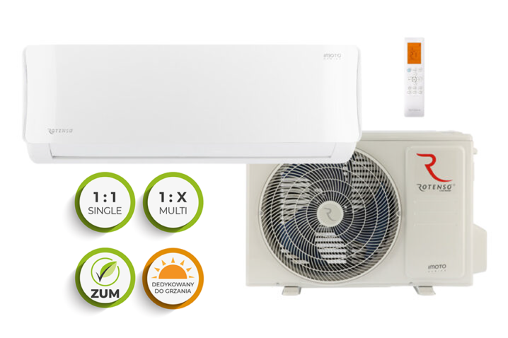 Rotenso Imoto (generacji X) to jednostka o najwyższej klasie energooszczędności chłodzenia A+++. Dedykowana do użytkowania całorocznego (chłodzenie i ogrzewanie pomieszczeń).