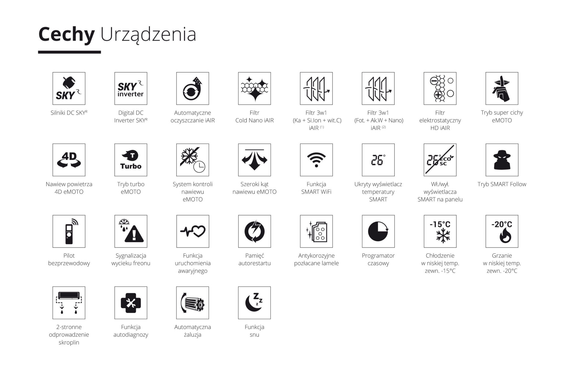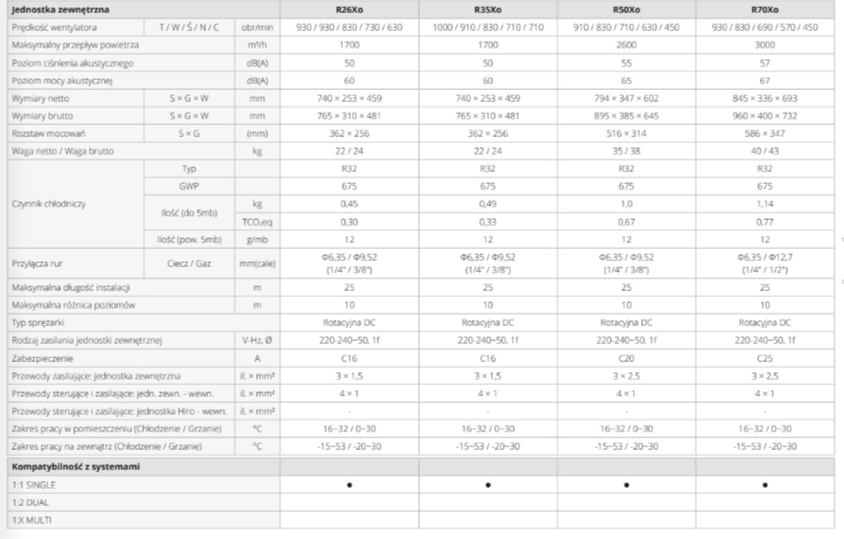 - Typoszereg klimatyzatorów z tej serii: