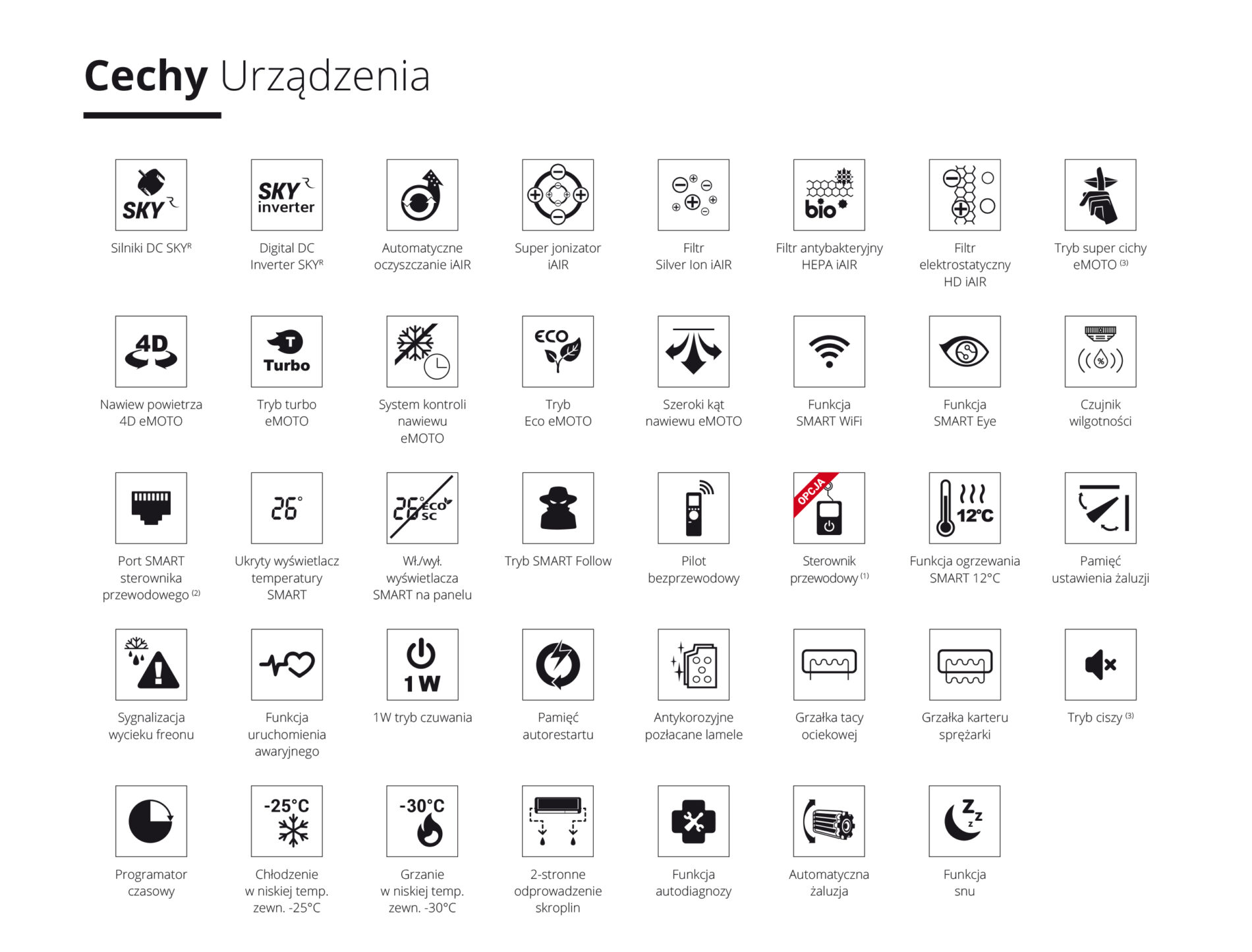 - Typoszereg klimatyzatorów z tej serii: