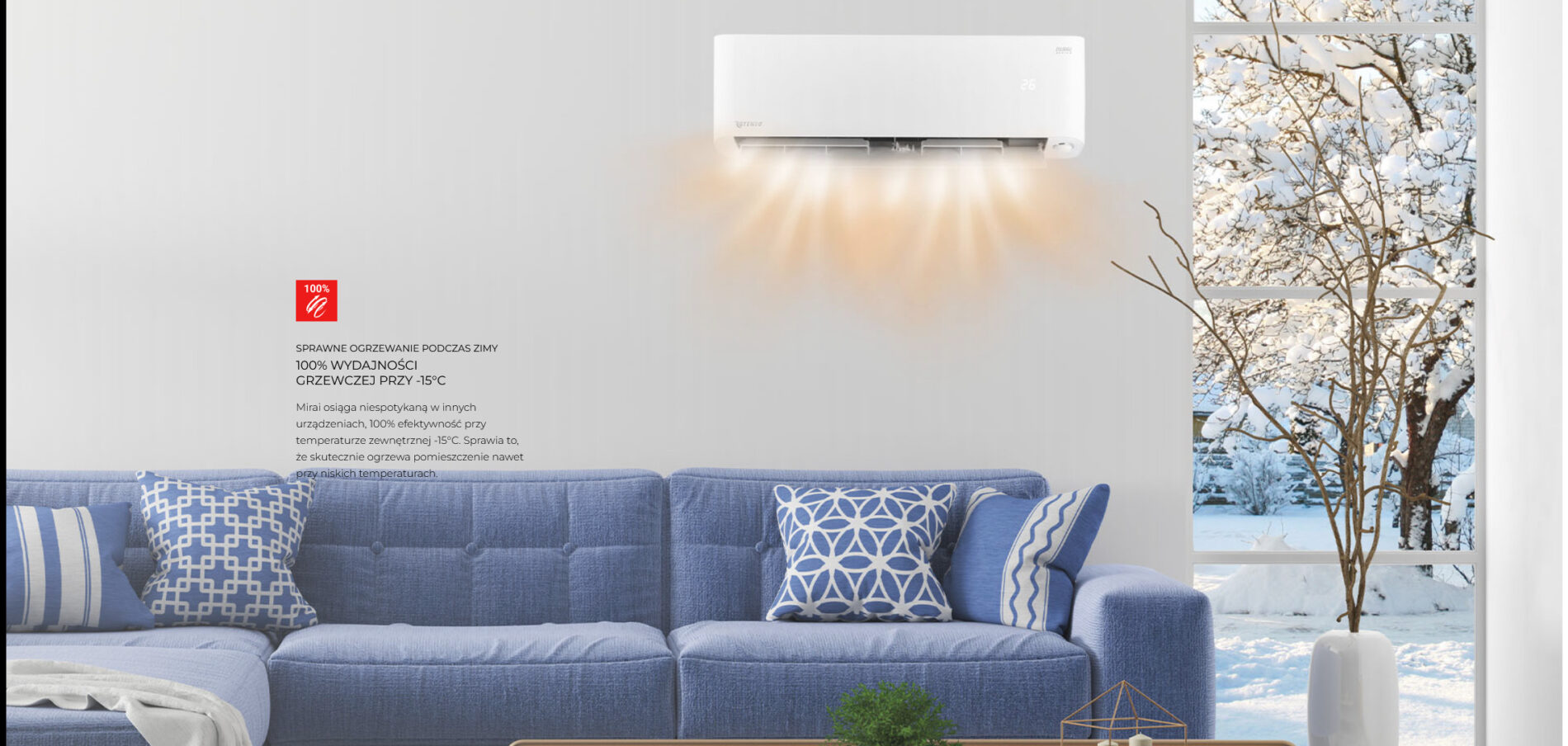 Model Mirai (generacji X) to zastosowana ultra wydajna technologia zapewniająca najwyższą klasę efektywności energetycznej A+++. Zaawansowana technologia inwerterowa umożliwia niespotykaną dotąd wydajność pracy klimatyzatora nawet gdy temperatura na zewnątrz spada do -30°C.