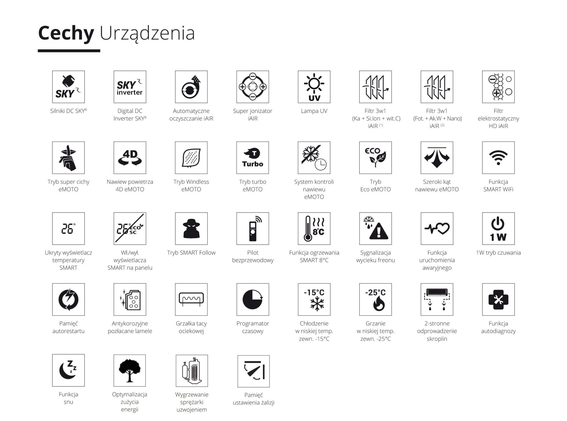 - SEER 8,5 (A+++) / SCOP 4,6 (A++)(dotyczy modeli 2,6 kW i 3,5 kW)