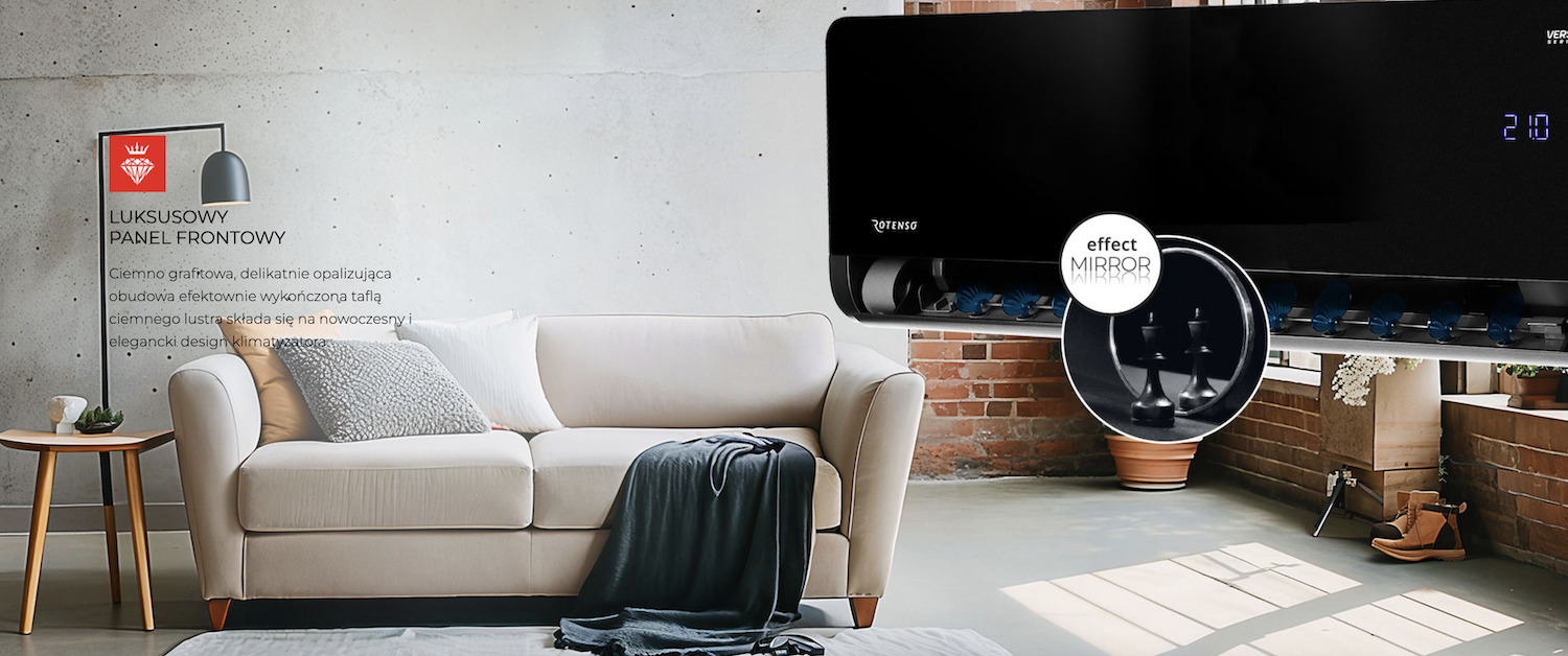 Klimatyzator ścienny Versu Mirror to nowa odsłona kultowego modelu premium wśród klimatyzatorów Rotenso.