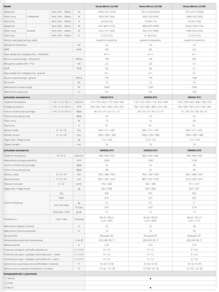 Klimatyzacja Rotenso Nowe Versu Mirror X R15