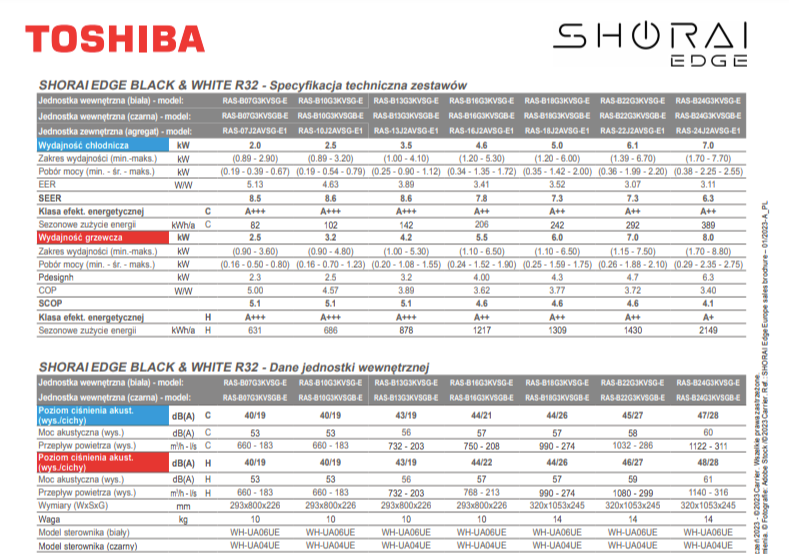 - TOSHIBA Shorai Edge Black 3,5 kW Cena: od 8799 zł netto.