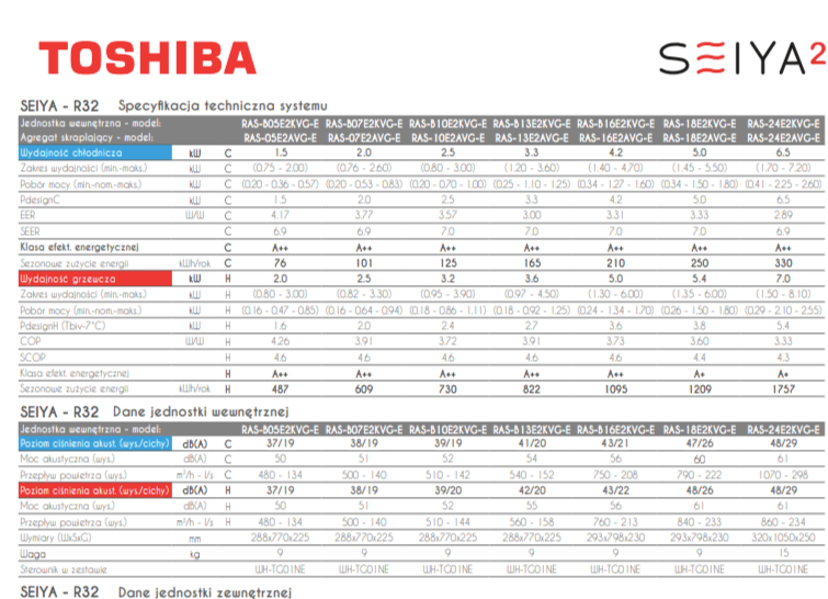 klimatyzator TOSHIBA Seiya 2